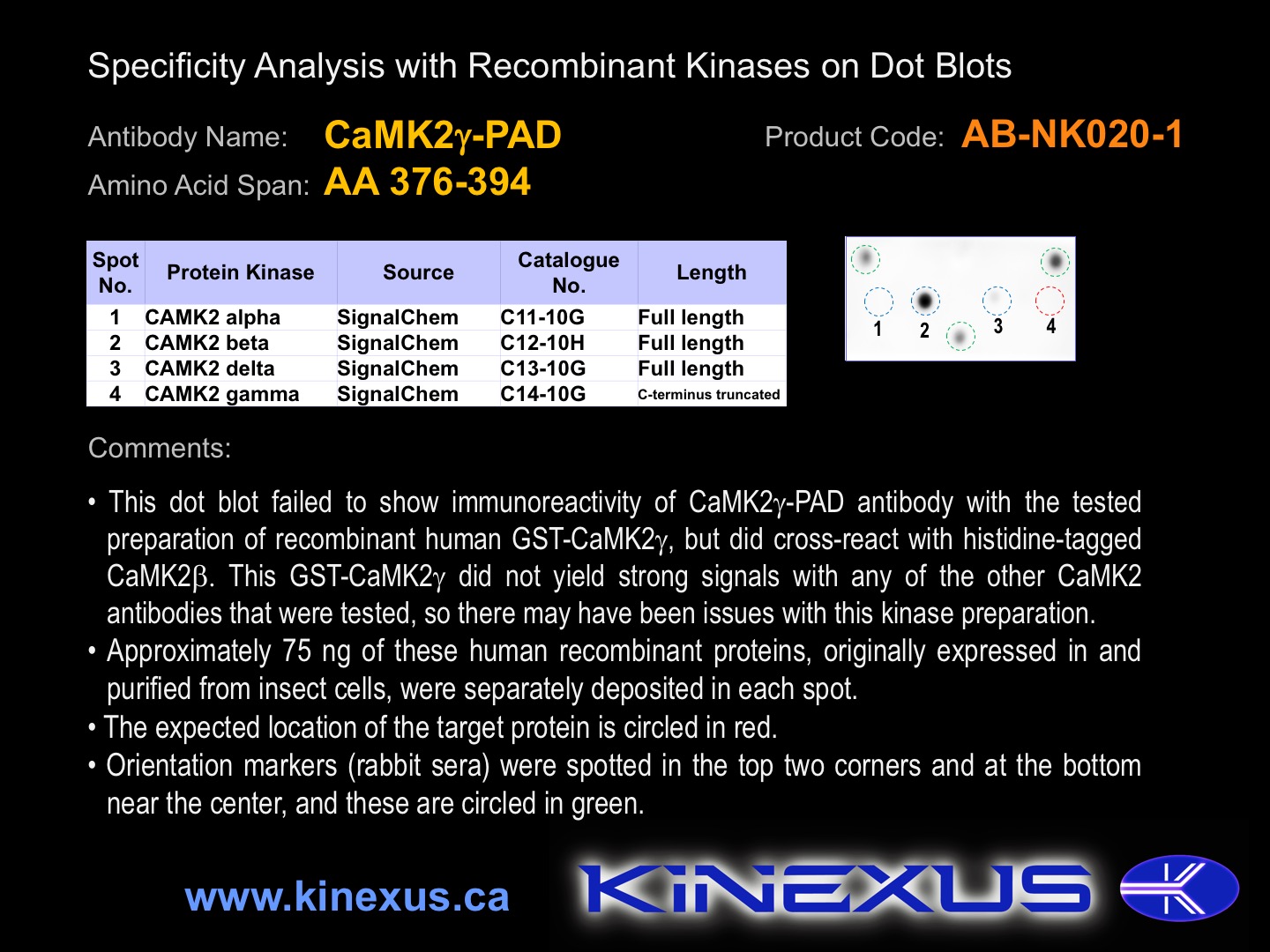 Figure 1. Dot blotting CaMK2g-PAD antibody with recombinant purified proteins.