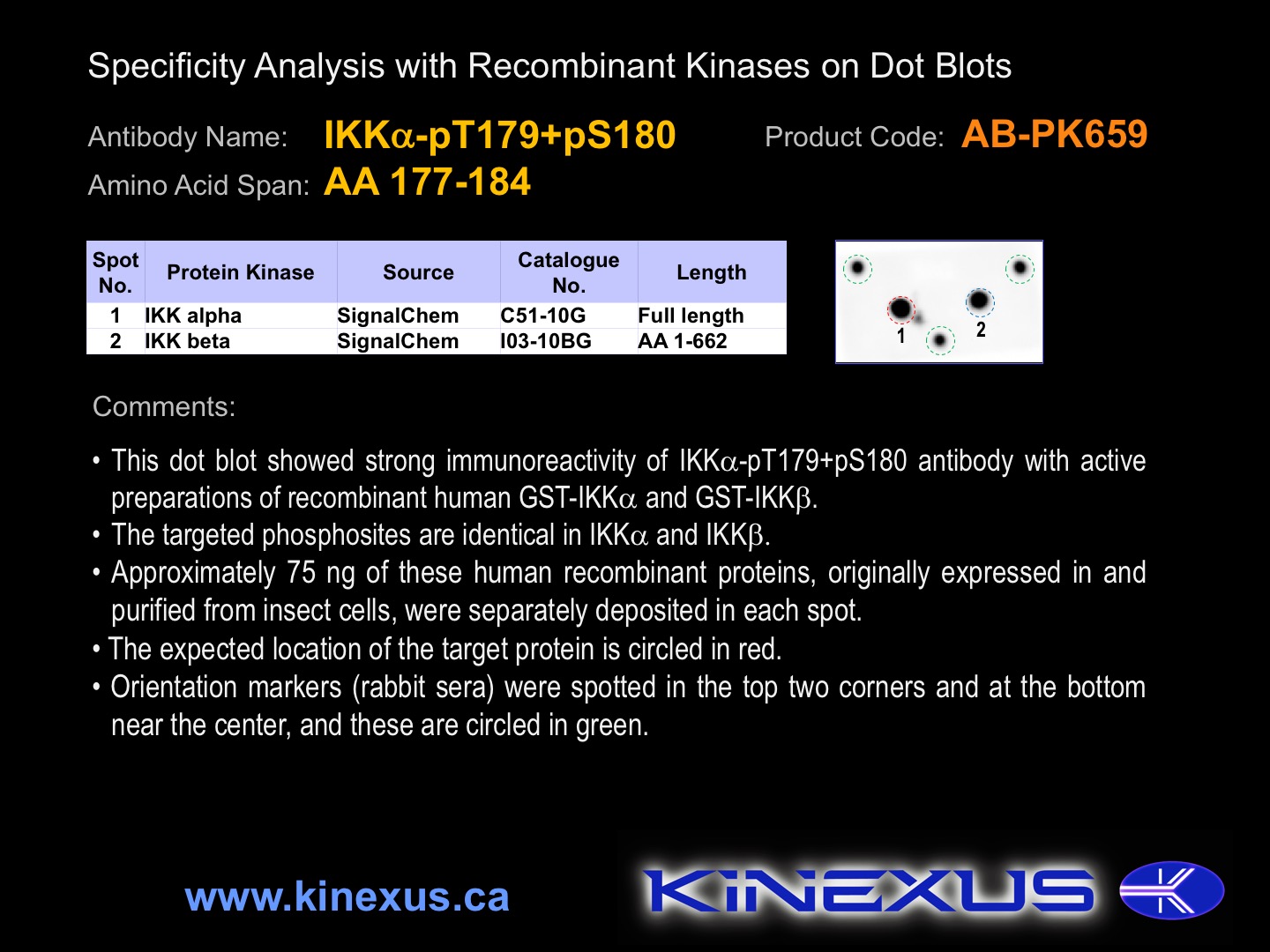 Figure 1. Dot blotting IKKa-pT179+pS180 antibody with recombinant purified proteins.